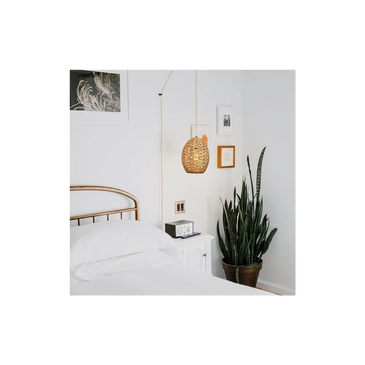 Brilliant! This woven light plugs in so that you can hang it anywhere in your dorm.